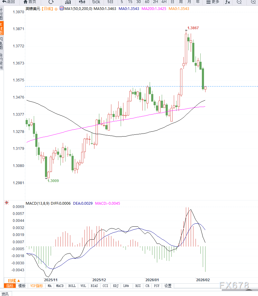 尽管阛阓相同瞻望好意思联储在2026年仍有进一步降息空间,但短期内好意思元在利率差与避险需求支撑下推崇更为坚挺,从基本面角度强化了英镑兑好意思元的下行逻辑。从日线结构来看,英镑兑好意思元在英国央行决策后跌破前期整理区间,下行趋势进一步证明。汇价已灵验跌破短期均线支撑,均线系统运行向下发散,显现空头动能正在增强。